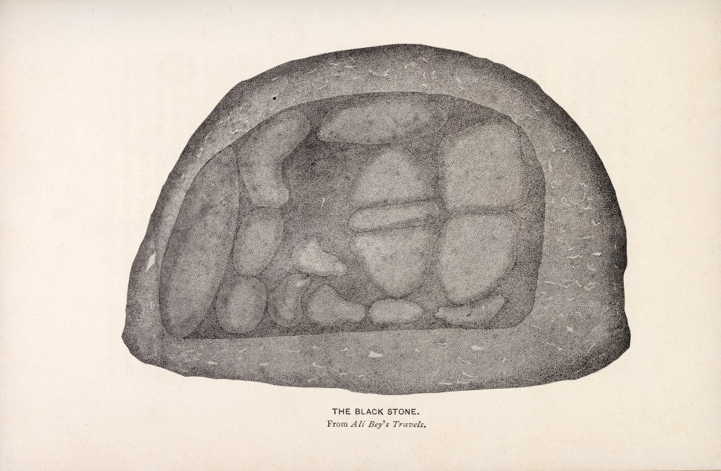 At the very beginning of his first chapter about the concept of lightness, in a manuscript prepared for the Charles Eliot Northon Lectures at Harvard in 1985, Italo Calvino writes: “My working method has more often than not involved the subtraction of weight. I have tried to remove weight, sometimes from people, sometimes from heavenly bodies, sometimes from cities; above all I have tried to remove weight from structure of stories and from language.” The work of art, and especially poetry, as Calvino tells us, involves the artist’s struggle against gravity and her or his aim at levitation. Calvino describes the artistic process as a rejecting-gravity activity. And indeed, looking at the world around us, one is astonished at how have we been occupied with verticality as motion, namely how have we been occupied in fighting against the natural phenomena of gravity. Towers, monuments, sculptures and even objects were erected or raised up upon podiums in a manner that usually aimed at ignoring the power of our globe’s gravity. At the same time, we also confront the natural and physical processes of constant disappearances of ‘the vertical’ into ‘the horizontal’, a process in which, slowly but continuously, solid and tangible objects lose their density and forms, crumble into pieces, and deteriorate, or, in less-peaceful and less-natural cases, namely through aggressive interventions, swiftly lose their weight and are being transformed into powder, and sometimes, as if in an alchemical laboratory, at the very last moments, just before they find rest on the horizontal line of the globe’s surface, appear like clouds of smoke aiming to the sky. This article aims at reflecting on another natural cosmic process, which moves in another direction, namely on the fall of meteors. The meteor, a cosmic floating stone, which gains weight and is reshaped at the very moment it enters the orbit our terrestrial globe, is an intriguing phenomenon. In contrast to the against-weight process discussed by Calvino, these fallen stones from the sky, which were and still are venerated as holy objects, present to us interesting cases for understanding how celestial and floating-in-the-air objects were gaining gravitas, formed into solid and defined substances, and considered as sacred things, in their terrestrial ‘after life’. At the focus of this study is the Black Stone (al-hajar al-aswad) of the Ka’aba in Mecca, a fragmented dark rock, which is set at the east corner of the Ka’aba in Mecca.