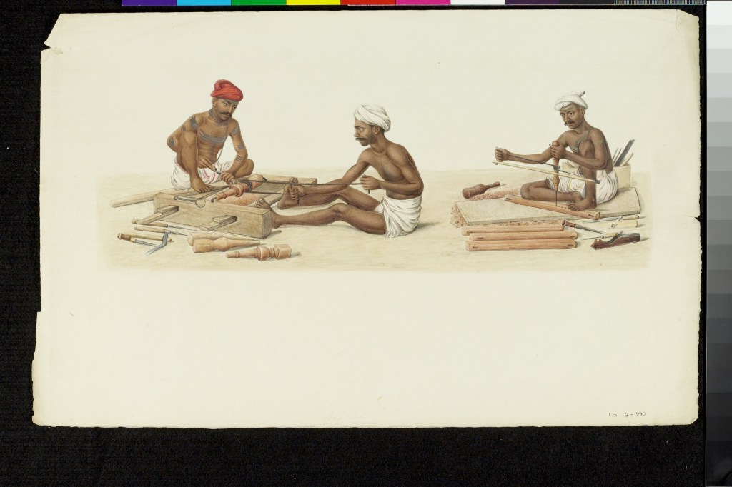 The illustrations accompanying Otto Salomon’s The Teacher’s Hand-Book of Sloyd (1891) emphasized that youth engaged in handwork should stand at a bench to do their work, regardless of the task. Throughout the 19th century, images of artisans in Europe and America depicted the noble craftsperson standing erect and attentive at their work bench, the products of a civilizing process that stressed the alertness and posture of an engaged citizen. To be upright while at work was to be culturally superior. Paintings, prints, and photographs of artisans from non-Western regions or from other ethnicities depicted the makers sitting on the ground. The assumption of this contrast is that they were quaint, base, or inferior. But is this colonial assumption of civilizing progress correct? Are there times when ground work is more appropriate economically, physically, ergonomically, or materially than bench work? Drawing on analysis of 19th-century firka sets of paintings that depicted South Asian artisans and British missionary photographs of African potters and metalworkers in the early 20th century, this essay seeks to push against the colonial perspective by revealing the advantages of ground work.