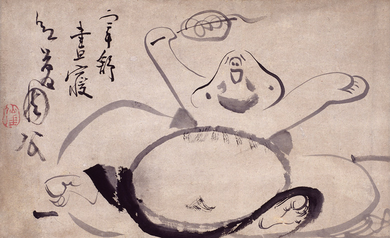 Even specialists of Japanese painting fail to realize that during the premodern era, artists in Japan almost without exception painted on the floor. This essay focuses on the ergonomics of traditional Japanese picture-making and considers its many art historical implications from a number of perspectives: 1) The position of painting within Japan’s floor-sitting culture more generally, how it relates to the seated viewer and the floor as a medium of sociability; 2) the practice of performative painting (sekiga) in the Edo period (1615-1868) and the incorporation of tatami marks into the texture of resulting works; and 3) how a fuller consideration of the floor-sitting artist necessitates different standards of legibility for the behavior of ink (ooze vs drip) and the relationship of mark to body and gesture.